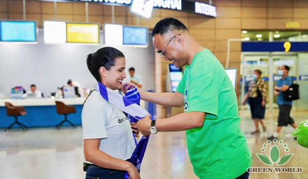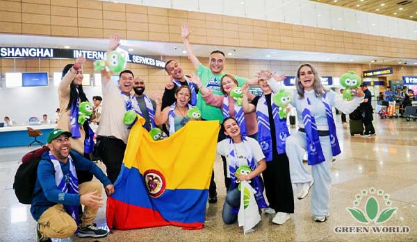 Whether at Nanjing Lukou Airport or Shanghai Pudong Airport, the reception teams waited early in the arrival halls. Holding bright Green World flags and eye-catching welcome boards, they stood out as the most striking sight in the crowd.