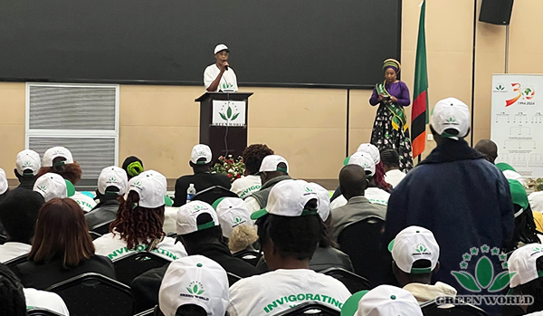 This event brought together the core strength and partners of Green World Zambian market. Mr. Peter Liu, General Manager of Green World Zambia branch, Mr. Noel Banda, the marketing manager of Green World Malawi branch, high-level distributor leaders, representatives of outstanding specialty store owners from various provinces, as well as the specially invited guest, Mr. Robert Salati, the soil science expert from the Agricultural Research Institute of Ministry of Agriculture of Zambia , all attended the event.
