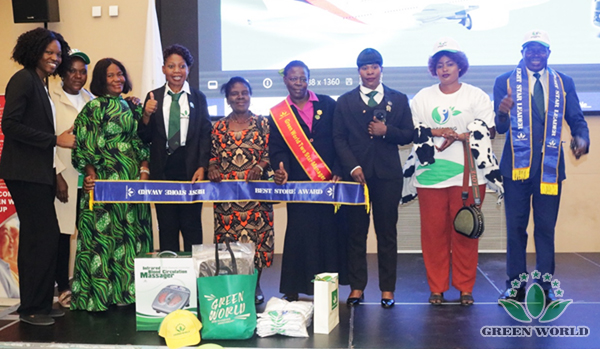 At the grand award ceremony, the outstanding distributor leaders, Ms. Prisca Mbewe, presented the "Rapid Growth Award" to the winners; Mr. Charles Mbewe presented the "International Tour Award" to the winners, among whom Ms. Doreen Chalwe shared her unforgettable trip to China. Mr. Peter Liu, general manager of Green World Zambia Branch, personally presented the awards and certificates to the winners of the "Business Car Award", the star managers, the directors, and the outstanding store winners.